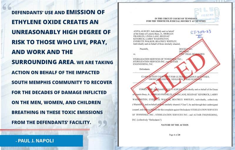 Nearly 50 Years of Toxic Air Emissions from Sterilization Plant in Memphis, Tennessee Napoli Shkolnik, along with Co-Counsel Wampler, Carroll, Wilson & Sanderson, , filed an Amended Complaint in a…