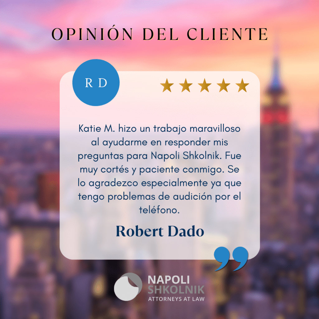 Un abogado de Napoli Shkolnik te acompaña en cada paso para proteger tus derechos y asegurar una compensación justa.